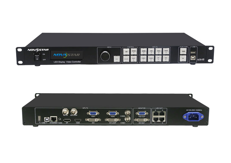 VX4S è un controller professionale di comando per display LED. Oltre alla funzione di controllo del display, dispone anche di una potente elaborazione front-end, quindi non è più necessario uno scalare esterno. Grazie alle interfacce professionali integrate, VX4S garantisce un'eccellente qualità dell'immagine, un suo controllo flessibile, e soddisfa notevolmente le esigenze del settore delle trasmissioni. L'interfaccia utente è facile e comprensibile, il funzionamento del display non è mai stato così semplice e divertente come con VX4S.